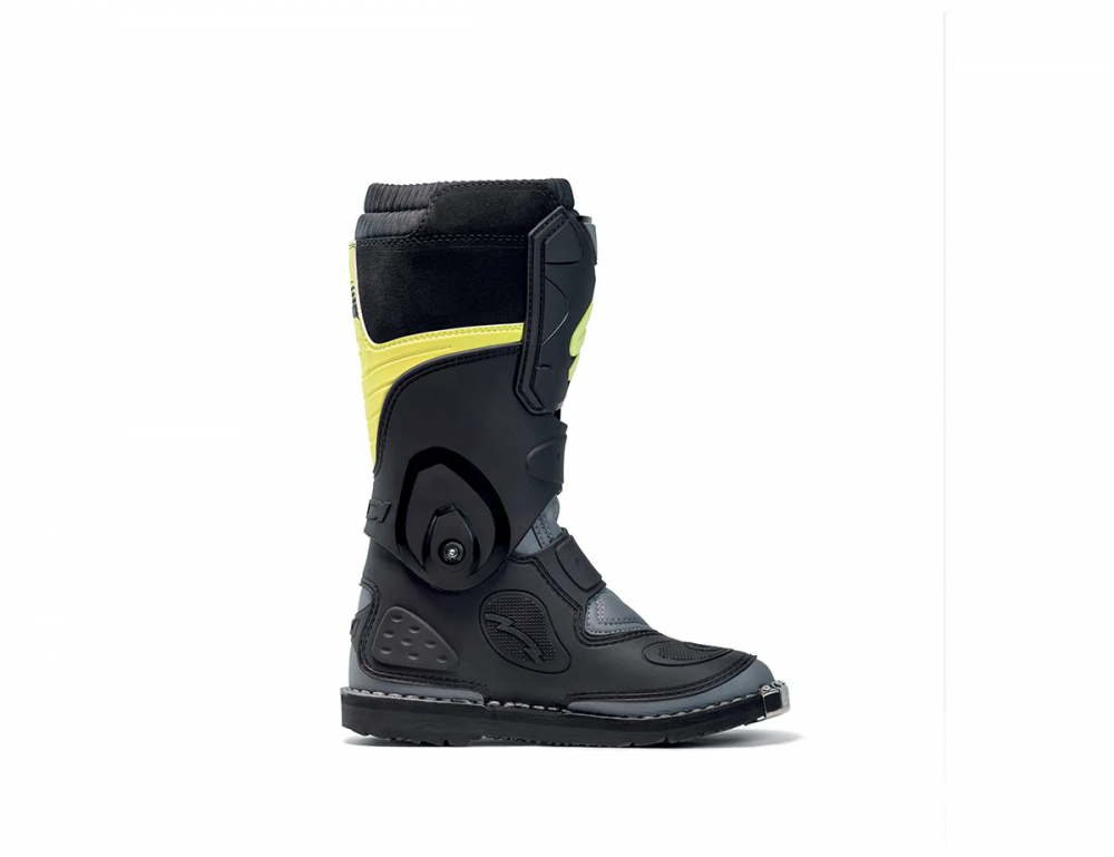 Кросові мотоботи Sidi FLAME розроблені спеціально для юних райдерів. Мають максимальний захист для комфортної та безпечної їзди дитини. Зовнішня частина взуття виготовлена з спеціального матеріалу TECHNOMICRO, який міцніший та легший за натуральну шкіру. Боти стійкі до промокання. Піклуйтесь про безпеку та комфорт ваших дітей!