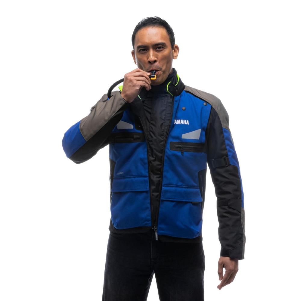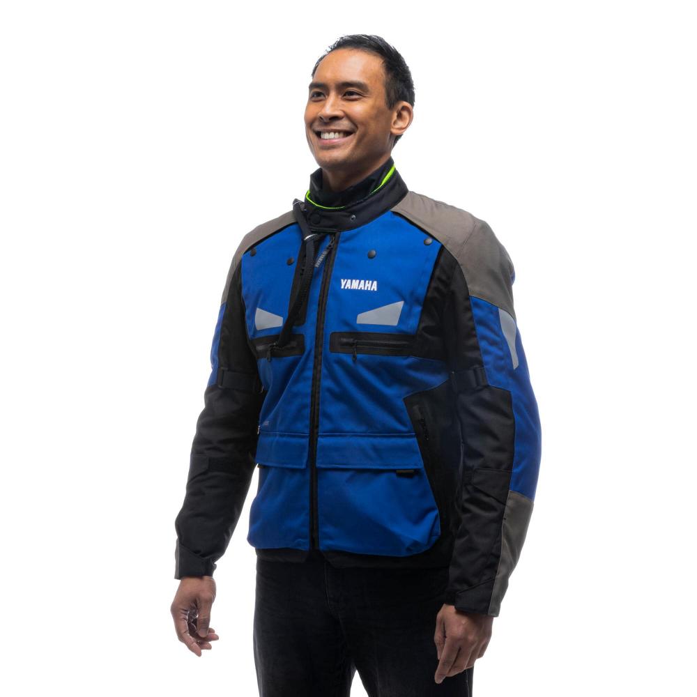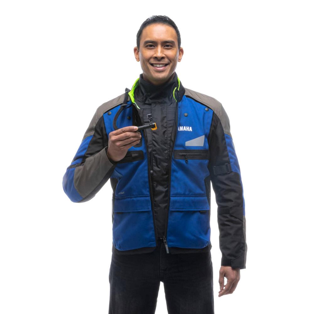 Чоловіча куртка від Yamaha - Adventure Rally - найкращий вибір для тривалих пригод. Куртка, представлена в легендарному синьому кольорі Yamaha Racing Blue із сіро-чорними вставками та флуоресцентною жовтою підкладкою. Має багато місця для зберігання необхідних речей, зокрема сім зовнішніх і дві внутрішніх кишені.