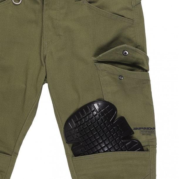 Мотоштани SPIDI Pathfinder Cargo зроблені з тканини Cordura / Cotton. Встановлено регульований по висоті, швидкознімний захист Warrior lev.1 на коліні. Штани підготовлені під встановлення опционального захисту стегон Warrior Lite. Мотоштани SPIDI Pathfinder Cargo сертифіковані відповідно до регламенту (UE) 2016/454. Є шість зручних кишень.