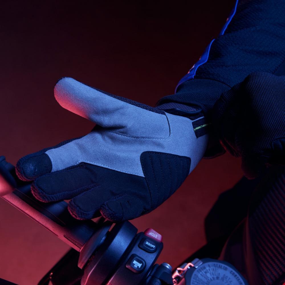 Матеріал поєднує повітропроникну 3D-сітку та еластичну тканину, завдяки яким досягається зручність в носінні рукавичок. Вони мають також захист суглобів пальців. Матеріал на долоні це багатошарова мікрофібра. Рукавиці оснащені ремінцем на липучці для максимального ергономічного регулювання.